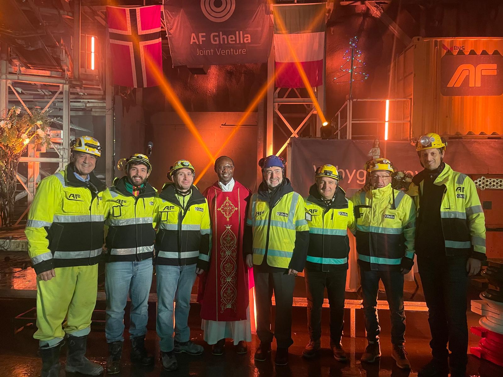 Following the religious celebration, Ambassador Nicoletti addressed a message of greeting to the approximately 150 workers of various nationalities engaged on the project. He expressed particular pleasure at the invitation and said: “Ghella represents one of the finest examples of how Italian technology and know-how can play a crucial role in the field of strategic infrastructure. Tunnel excavation using ‘moles’ represents an important alternative to traditional blasting methods, which are prevalent in Norway, and it is a technique in which Ghella and other Italian groups enjoy a competitive advantage. I am pleased to see that the TBM tunneling works are nearing completion well ahead of schedule. I therefore trust that the successful implementation of this project will encourage the use of Italian TBMs in other infrastructure works in Norway. The partnership with AF Gruppen thus stands as an example of successful synergies between Italian and Norwegian industries in a strategic sector such as infrastructure.