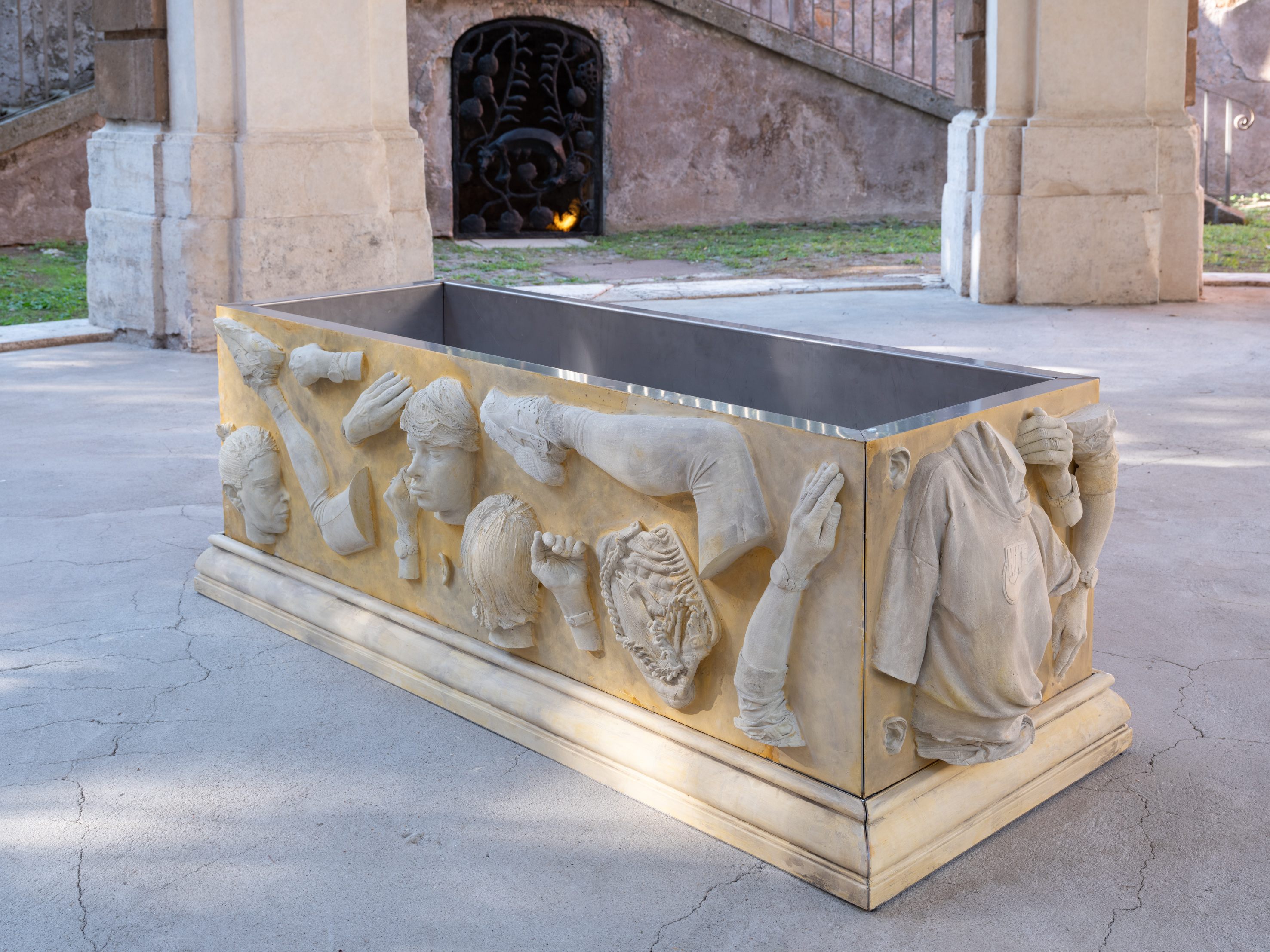 Lili Reynaud-Dewar presenta invece Sarcophagus (2025), un’opera site-specific composta da calchi del suo corpo che intreccia memoria, identità e rappresentazione, dialogando con i fregi e le decorazioni della Loggia.